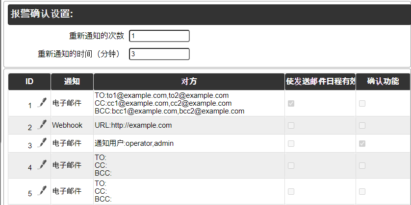 设置了发送测试电子邮件的目的地址。