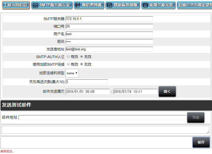 发送测试电子邮件到设定的目的地址。