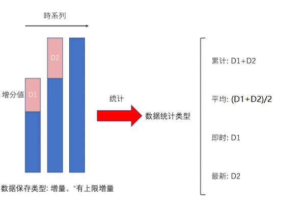 分、小时、日、月数据的统计方法,随着“数据统计类型”与“数据保存类型”的不同而不同。