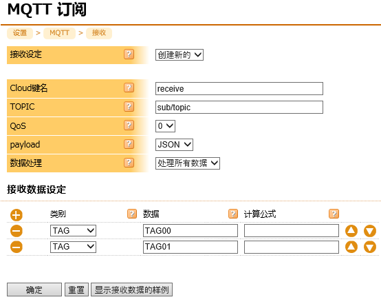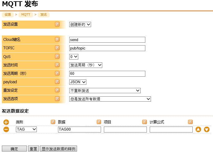 | 计算公式 | 当类别不是STAG时可以设置。 发送的数据为设定的转换公式的计算结果。 如果计算失败,将不会发送。 |