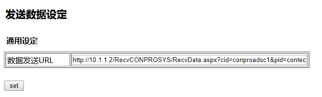 数据发送的目标URL应设置为“http://云服务器的主机地址/RecvCONPROSYS/RecvData.aspx?cid=XXX&pid=XXX”。
