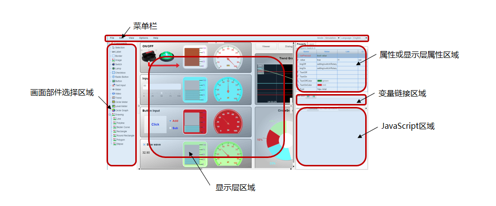 HMI Editor具有以下操作区域。