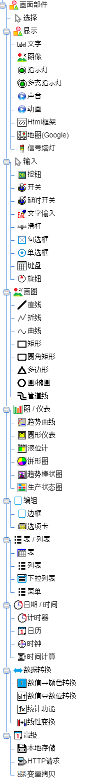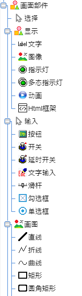 画面部件选择区域即以树形显示的画面部件列表。