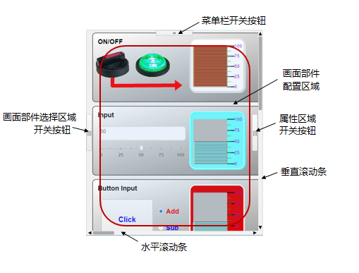 点击可切换画面部件选择区域的显示和隐藏状态。