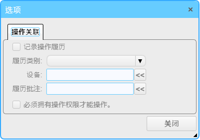 在部件的详细设定对话框,在“操作关联”设定页,打勾“记录操作履历”选项,可以将部件的操作履历保存在服务器中。
