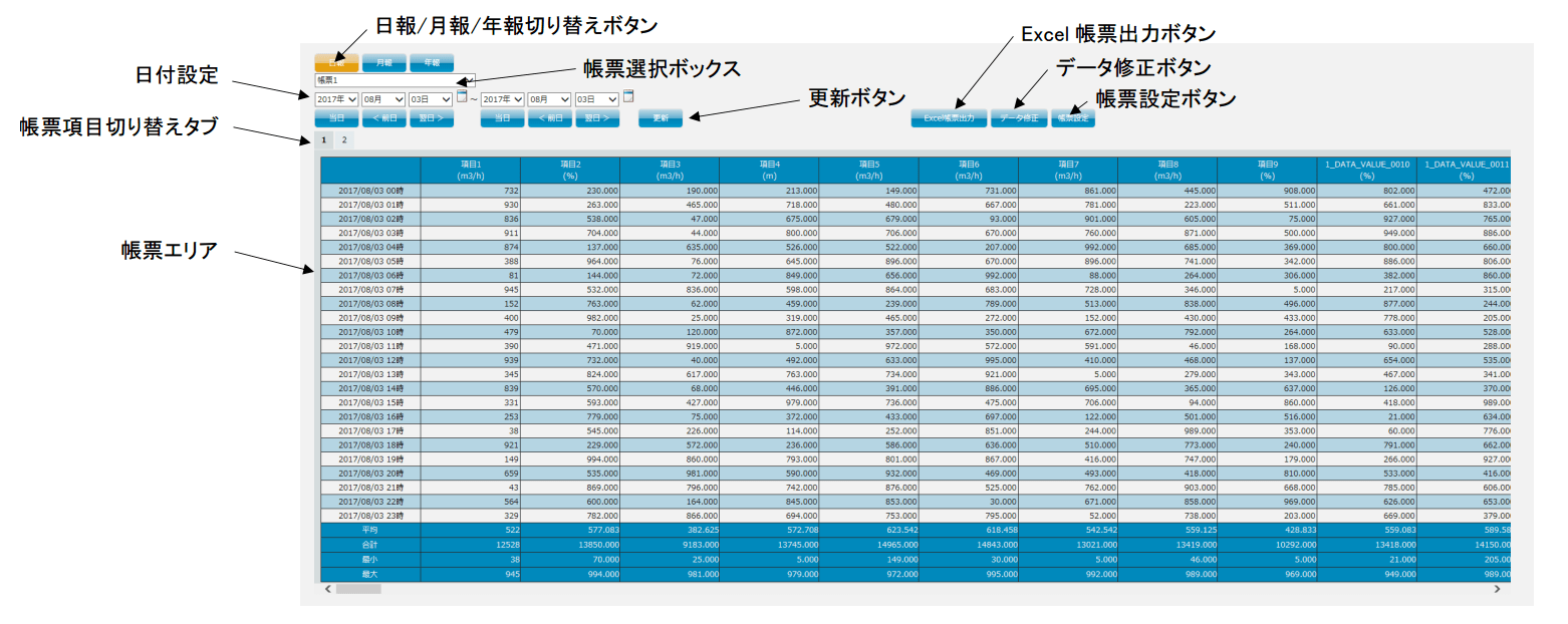 以每天、每月、每年的时间段,显示从CONPROSYS收集的数据的报表。